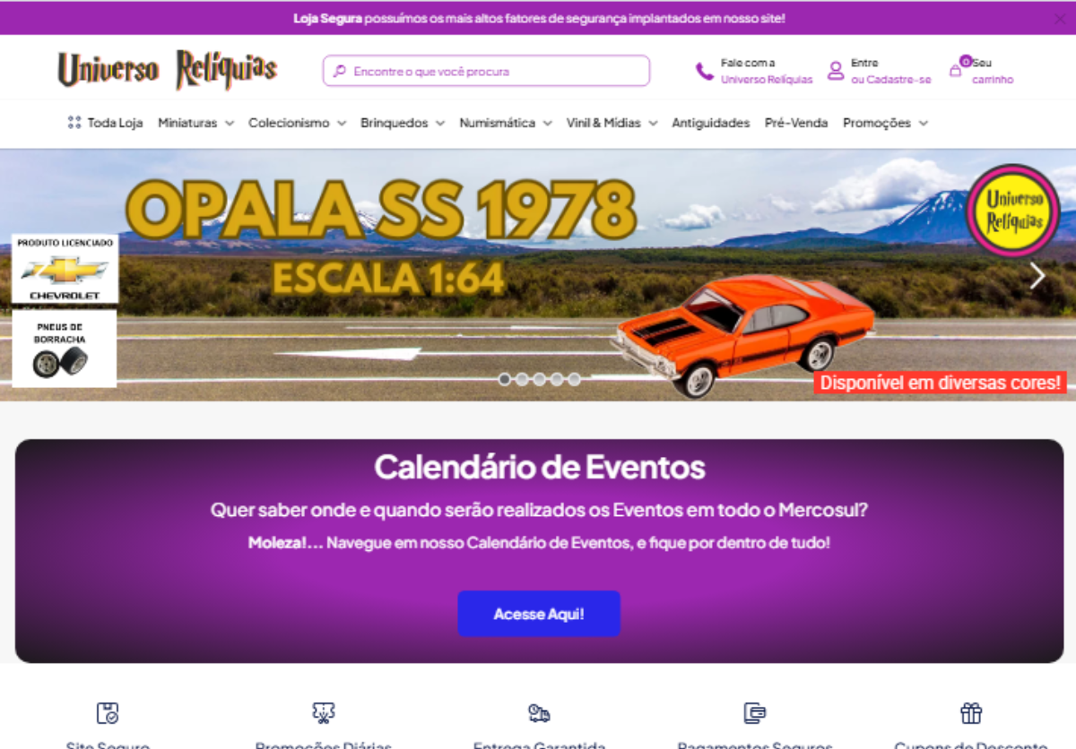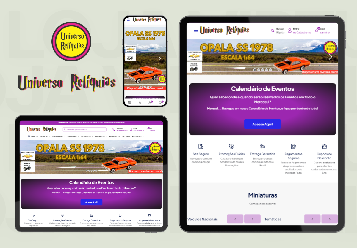 O sucesso da loja virtual foi tão significativo que o projeto evoluiu ainda mais. Hoje, além do e-commerce, o cliente também conta com uma loja física, consolidando o crescimento do negócio e ampliando o alcance da marca Universo Relíquias.